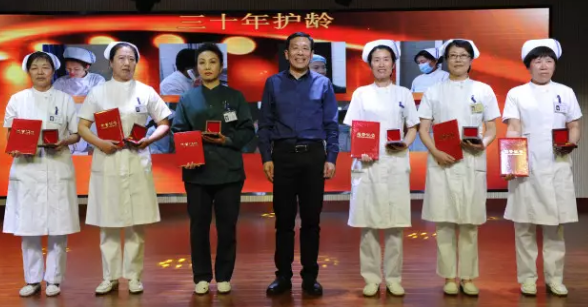 大会不仅准备了精彩的节目,还分别为市级优秀护士、院级优秀护士以及在护理技能比赛中的优胜者颁发证书,为在平凡岗位坚守“三十年护领”的护士们颁发证书和奖牌,将大会推向了高潮。