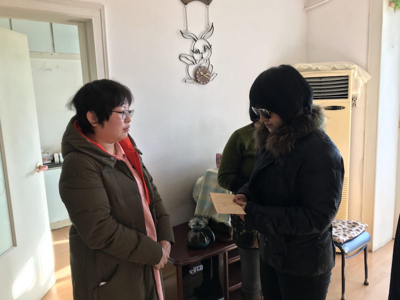 1月11日,院党总支副书记刘颖、党办室主任陈婉秋、妇委会主任刘金英、工会办公室齐炜,共同前往天津看望正在那里就医的张凯敏,并将捐款交到张凯敏本人手中。