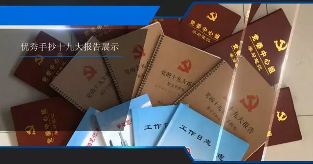 今年,每一个党员都有这样一个经历,经过一天忙碌的工作,好不容易闲下来,确实坐在书桌前,拿出笔记本抄上一会十九大原文,这是今年每个党员的必修课,党的十九大为我们描绘了美好的蓝图,提出了具体要求,让我们每个人心中都有了自己的中国梦。而我们,同样在集团内部选出了数十位优秀十九大原本手抄本,并在活动现场进行了展示。