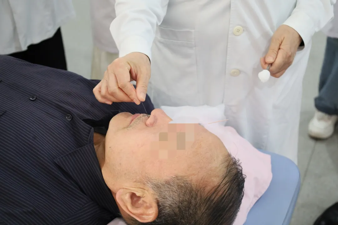 卞金玲教授结合个人数十载临证经验,深入浅出地阐述了“醒脑开窍”针法的理论基础、组方原则、操作要点及现代研究进展,并强调该疗法以“醒神开窍、通调元神”为核心,通过严格的穴位配伍与手法量学标准,显著提高了中风患者的救治率与康复质量,开创了针灸治疗中风病的新纪元。她一边行针,一边详细讲解水沟、内关、三阴交等主穴的进针角度、深度、手法刺激量及得气要点,其手法娴熟飘逸、一气呵成,令在场医护人员及患者叹为观止。