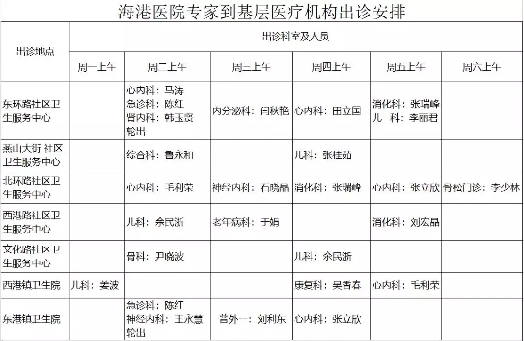 海港医疗集团成立后,建立了技术支援体系。目前,每天都有海港医院各科室的专家下沉到各基层卫生机构,为百姓进行慢病筛查用药指导及常见病多发病的诊断治疗。每月均有海港医院的专家为乡医、站医进行培训。培训内容大多通俗实用,也对居民、村民开放。出诊专家及培训具体时间安排,您可以咨询当地乡医、站医、卫生院、卫生服务中心或海港医疗集团外联部。