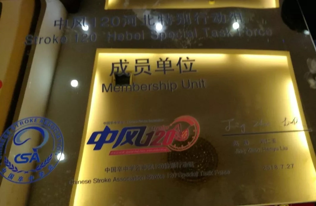 在院领导的大力支持下,在兄弟科室积极配合下,海港医院神经内科急性脑梗死溶栓绿色通道不断的完善,现被河北省神经内科质量管理与控制中心评为“河北省首届卒中地图单位”及“首届中风120特别行动组成员单位”!