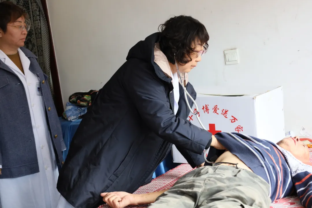 在81岁的老党员家中,专家团队为他进行了全面的身体检查。大娘激动地握着医护人员的手说:“这么远的路,你们还专门到家里来给我看病,真是太感谢了!”专家们详细了解他的健康状况,并针对他多年的疾病给予了专业的康复指导。这份上门送达的医疗关怀,让老人感受到了浓浓的节日温暖。