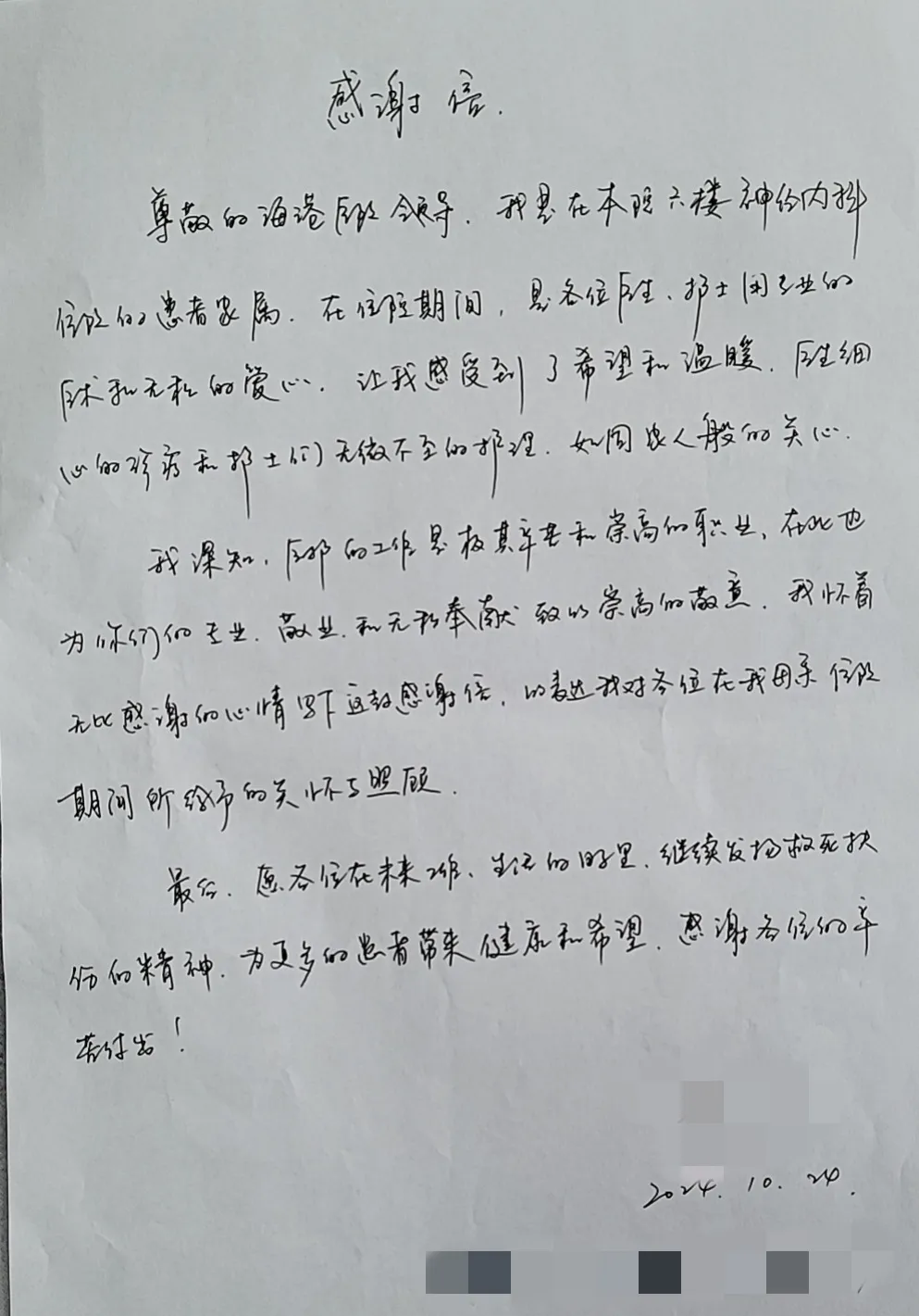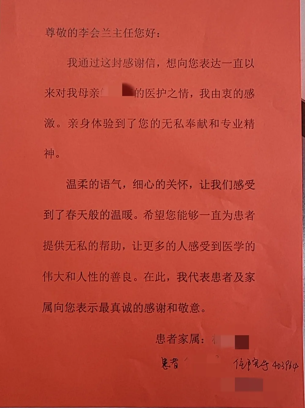 神经内科医护人员无私奉献的敬业精神,得到了患者的肯定和崇高的敬意。