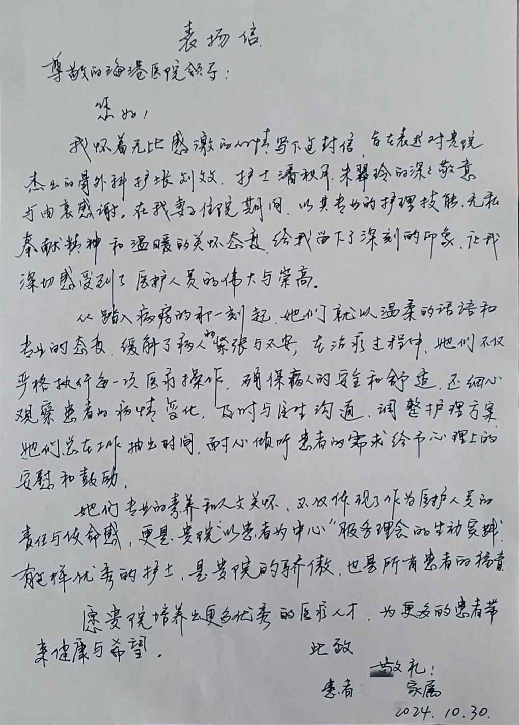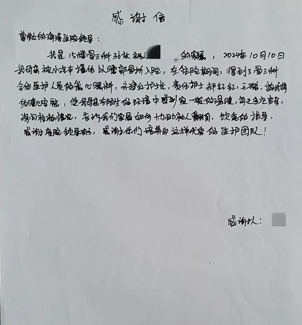 海医人用真诚、热情的优质服务,赢得了患者的一致好评,为海医人点赞!