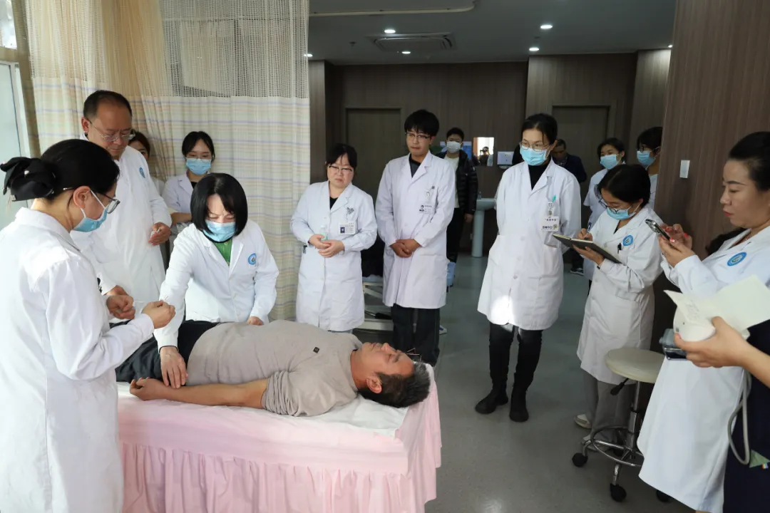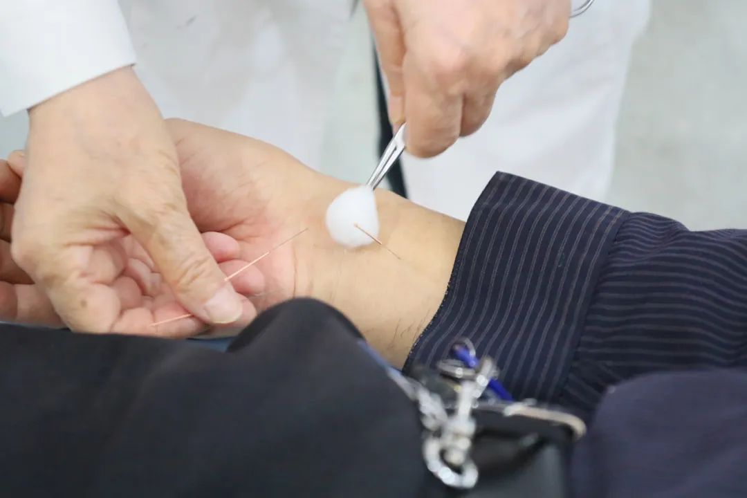 卞金玲教授结合个人数十载临证经验,深入浅出地阐述了“醒脑开窍”针法的理论基础、组方原则、操作要点及现代研究进展,并强调该疗法以“醒神开窍、通调元神”为核心,通过严格的穴位配伍与手法量学标准,显著提高了中风患者的救治率与康复质量,开创了针灸治疗中风病的新纪元。她一边行针,一边详细讲解水沟、内关、三阴交等主穴的进针角度、深度、手法刺激量及得气要点,其手法娴熟飘逸、一气呵成,令在场医护人员及患者叹为观止。